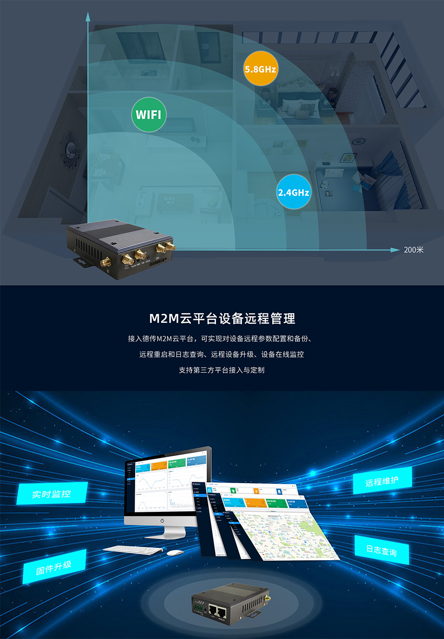 - 2.4/5.8GHz 双频 WIFI