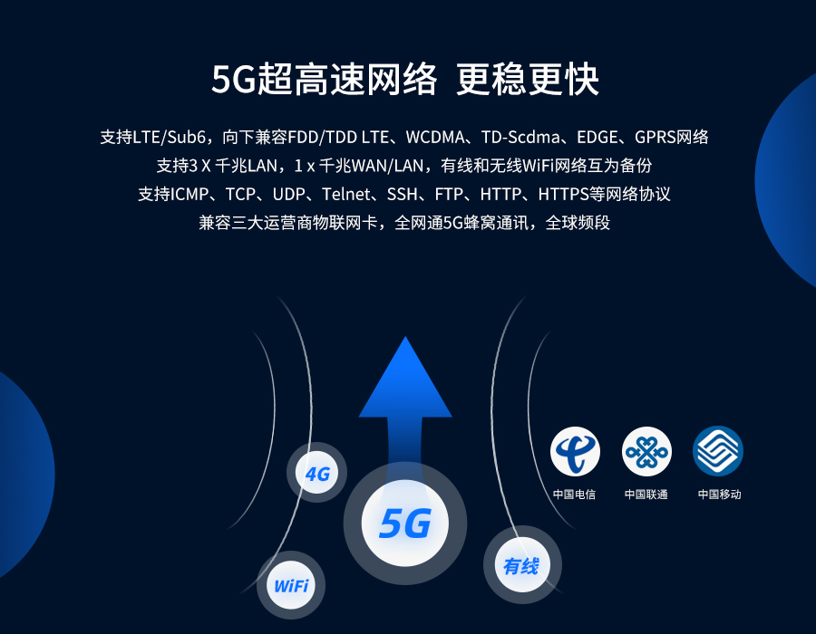 5G Band:N1/N2/N3/N5/N7/N8/N12/N20/N25/N28/N40/N41/N66/N71/N77/N78/N79