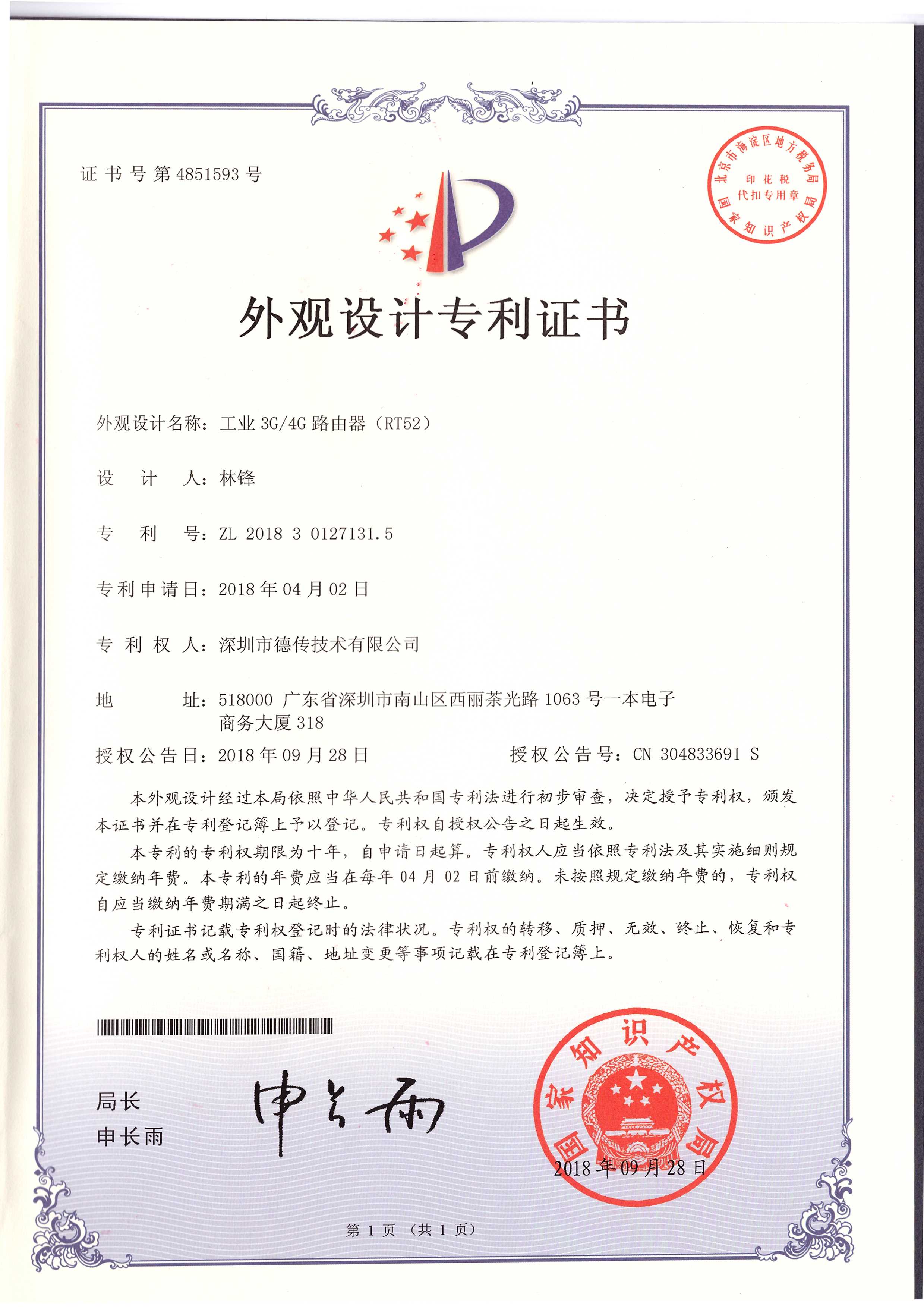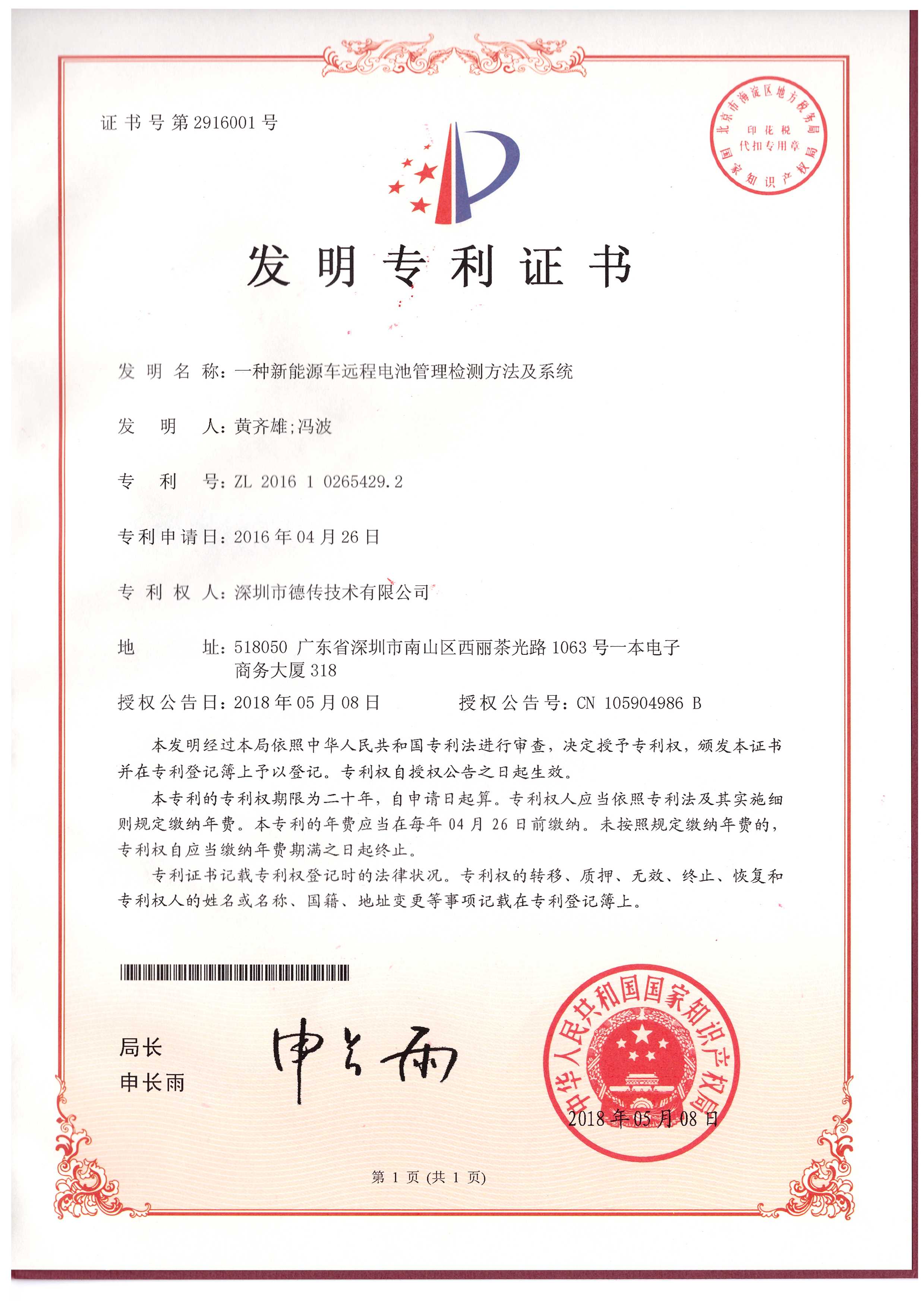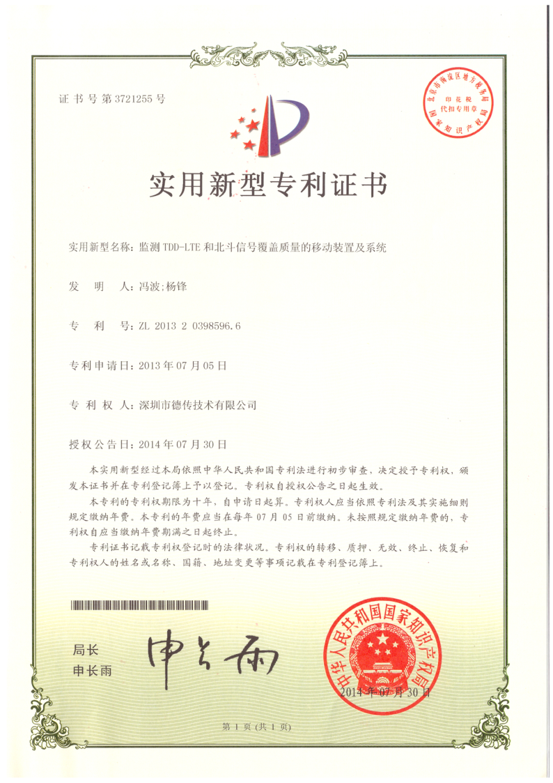 自2012年成立以来,德传始终将技术领先作为企业发展的根本,已通过国家高新技术 企业认证、双软认证、ISO9001认证和创新型中小微企业认证。物联网终 端设备已通过CCC、 CE、 FCC、 RoHS、 NCC等各项国内外认证,并且荣获多份国家产品发明、实用新型和外观专利。